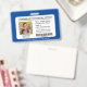 Um crachá de identificação de estudante elementar moderno. O design tem uma borda azul ousada no fundo. Mostra uma foto de identificação do estudante de tamanho adequado. As informações podem ser personalizadas e incluem o nome do estudante, número de identificação, série, nome do professor e espaço para informações adicionais. Além disso, o endereço da escola e o ano letivo. Também funcionaria para professores. Todos os elementos do design podem ser personalizados em cor para atender às necessidades da sua escola. A cor deste crachá pode ser personalizada para combinar com as cores da escola. Se precisar de ajuda com este modelo, por favor me envie uma mensagem e responderei imediatamente e ficarei feliz em ajudá-lo. Obrigada! Sandy