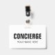 Crachá de identificação de concierge com clipe. Modelo de tipografia moderna. Personalize com pessoal, membros da equipe, colegas de trabalho, funcionários, colegas, trabalhadores, etc. Ótimo para hotel, escritório, centro de conferências, evento, negócios, etc.