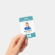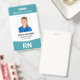 Um crachá para enfermeiros incluindo foto, nome, número de identificação e código de certificação. Este crachá é ideal para funcionários médicos, como enfermeiro registrado RN, Enfermeiro Prático Licenciado LPN, Enfermeiro Praticante NP ou Unidade de Terapia Intensiva UTI. Este moderno crachá de identidade de funcionário também funcionará bem para funcionários de cuidados geriátricos e casas de repouso. Por favor, note que o código de certificação, como RN, LPN, PN ou UTI, também são exibidos no verso do crachá. Cor: Caribe