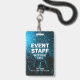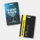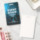 Crachá de identificação de equipe de evento com foto de bastidores perfeito para Coordenadores de Eventos, equipe e demais membros da equipe para facilitar o evento. É preferível usar uma foto escura para que o texto branco seja facilmente visto e lido. Toque em 'personalizar mais' para ajustar o tamanho da fonte, se necessário.
