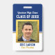 Crachá de identificação de foto azul e dourado de