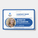 Crachá de identificação minimalista azul para pequenas empresas com código QR, crachá de identificação de foto de funcionário