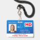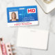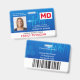 Recurso de crachá de identificação do funcionário médico/médico moderno com fundo azul médico, foto única, logotipo, nome e localização.