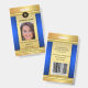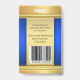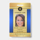 Crachá de identificação fotográfico com design azul e dourado elegante com espaço para sua foto e logotipo personalizados. No verso, você pode adicionar um código de barras ou código QR personalizado e textos adicionais ou excluir os modelos. Você também pode copiar e colar o design e as fotos da frente para o verso, se desejar.