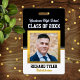 Esses pequenos crachás personalizados nas cores da sua escola com foto são um ótimo complemento para o planejamento da sua reunião, com a foto do anuário do ensino médio de todos os convidados e o cargo que ocupavam no último ano. Você pode editar, adicionar ou excluir qualquer texto que desejar, movê-lo ou deixá-lo como o modelo mostra.
