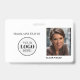 Este crachá de identificação profissional e limpo foi projetado para integrar-se perfeitamente à marca da sua empresa. A frente do crachá apresenta um layout branco minimalista e elegante que inclui um espaço dedicado para o logotipo da sua empresa, uma foto do funcionário, nome e cargo. A paleta de cores atemporal garante uma aparência polida e consistente para toda a sua equipe.