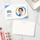 Um crachá de funcionário colorido moderno com um layout profissional. Ideal como identificação de funcionário para sua empresa ou local de trabalho. Adicione a fotografia do funcionário, nome e ocupação. Informações opcionais, como número de identificação do crachá ou data de validade, podem ser incluídas ou deixadas em branco.
