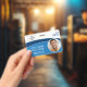 Represente seu negócio com estilo fornecendo aos funcionários crachás de identificação modernos e profissionais. Fazer o upload do logotipo da sua empresa, uma foto do funcionário e seu código de barras de segurança é fácil e rápido. Usar os modelos para o nome da empresa, nome do funcionário, cargo, departamento/equipe/divisão, número de identificação do funcionário e data de validade é simples e direto. O design azul e branco é clássico, mas moderno. Este crachá de identificação fornece segurança para a sua empresa e funcionários, ao mesmo tempo em que apresenta a marca corporativa com uma aparência elegante.
