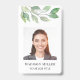 Este crachá de identificação da empresa do funcionário apresenta uma fotografia e um modelo de logotipo em um fundo de vegetação botânica em aquarela.