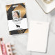 Crachá de identificação de funcionário da empresa com modelos criados para você. O fundo é um moderno abstrato em preto, branco e dourado.