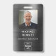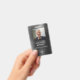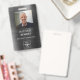 Cadalete de identificação de funcionário personalizado de black metal moderno. Personalize este crachá de identificação corporativa com o nome do seu funcionário, cargo, foto e logotipo da sua empresa na parte frontal e seu texto de informação personalizado na parte traseira. A foto do funcionário funciona melhor no formato quadrado. Seu logotipo funciona melhor como um png em formato quadrado com fundo transparente. O logotipo de espaço reservado que você vê no crachá será completamente substituído pelo design do seu próprio logotipo.