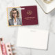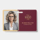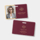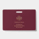 Crachá de identificação de funcionário horizontal minimalista moderno personalizado burgundy vermelho e dourado com foto e logotipo da empresa. Este crachá elegante apresenta um logotipo dourado personalizado, nome e cargo para um visual sofisticado. Perfeito para empresas que buscam uma identidade elegante e coesa.