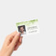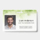 Crachá de identificação de funcionário profissional e moderno em tons verdes com foto personalizável, código de barras, logotipo da empresa, nome, cargo e informações de segurança. Ideal para funcionários de escritório, funcionários de armazém ou membros da equipe de eventos. Adicione seus detalhes personalizados para melhorar a identificação no local de trabalho e o controle de acesso.