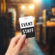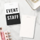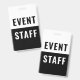 Crachá de identificação de funcionários do evento. Design moderno corporativo preto e branco com fonte em negrito fácil de ler. Personalize este modelo de funcionário do evento, altere facilmente o texto e as cores neste design.