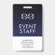 Crachás de identificação especiais para funcionários de eventos que incluem um modelo de logotipo que você pode substituir pelo logotipo ou gráfico da sua empresa ou evento. Projetado para funcionários corporativos, de festas, shows ou convenções e segurança.