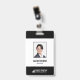 Um crachá de identificação de negócios moderno com a foto, nome e cargo de um funcionário. O crachá de identificação do funcionário corporativo também inclui o nome e logotipo da empresa. A cor de qualquer elemento de design deste crachá pode ser personalizada.