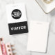 Crachá de identificação de visitante com logotipo de negócios personalizado. Design moderno em preto e branco com fonte fácil de ler. Personalize este modelo de crachá de visitante com o logotipo da sua empresa, altere facilmente o texto e as cores neste design.