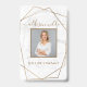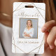 Crachá de identificação fotográfico moderno mármore branco geométrico dourado. Este design feminino simples é perfeito para qualquer mulher de negócios profissional que procura uma identidade corporativa artística divertida. Perfeito para um planejador de eventos, maquiador, cabeleireiro, proprietário de salão e muito mais!