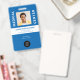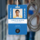 Tipografia moderna crachá de identificação personalizado azul de enfermeiro de hospital com tipografia em negrito, código de barras e logotipo personalizado. +++++++++++ Fácil de personalizar com sua foto e detalhes em ambos os lados.