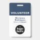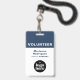 Apresente uma imagem limpa e profissional, ao mesmo tempo em que apoia a segurança no local de trabalho com este Crachá de Voluntário Funcional Personalizado com Código de Barras e Logotipo Corporativo Azul. O layout de design simplificado foca na clareza e eficiência, tornando-o ideal para organizações que preferem um estilo de identificação minimalista e focado em texto.