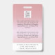 Este crachá de identificação personalizado em rose gold inclui uma foto do funcionário, nome, cargo, nome do hospital/empresa, localização, número de identificação do funcionário e código de barras. O fundo apresenta um degradê em rose gold. A parte de trás do crachá apresenta seu logotipo e campos de texto personalizados adicionais para informações de devolução ou outros detalhes. Perfeito para instalações médicas ou corporativas que precisam de identificação de segurança.