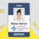 Crachá Moderno Azul Marinho e Branco com Logotipo da Empresa de Saúde Crachá de Identificação com Foto e Nome do Médico e da Enfermeira.