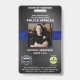 Identifique-se facilmente e ao seu oficial de polícia no departamento de polícia com essas placas de identificação personalizadas da bandeira da linha azul fina, foto, logotipo, código de barras personalizados. Personalize com foto do oficial de polícia, nome, número da placa, detalhes e departamento de polícia. Personalize com o logotipo da sua delegacia, selo do estado e código de barras. Esta crachá de identificação policial da linha azul fina é perfeito para todos os oficiais de polícia, aplicação da lei, sargento, chefe, capitão e tenente. DIREITOS AUTORAIS © 2020 Judy Burrows, Black Dog Art - Todos os direitos reservados. Placa de identificação policial personalizada com foto para aplicação da lei