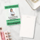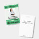 Este crachá de identificação apresenta o nome do hospital, uma ilustração do funcionário (que você substituiria por sua própria fotografia), a localização e o número de identificação do funcionário, a data em que o funcionário ingressou na empresa, hospital, etc. e o cargo. No verso é onde se devolveria o crachá se ele fosse encontrado. Todo o texto é editável, com exceção do nome do estabelecimento. As faixas verdes atrás do texto podem ser alteradas para qualquer cor, também. O tamanho da fonte, o estilo e a cor podem ser alterados, também.