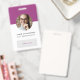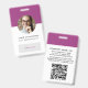 Este design apresenta uma cor roxa em branco para um estilo minimalista moderno e limpo de crachá de identificação profissional com logotipo e foto. Personalize este crachá de identificação com a foto do seu funcionário, nome, cargo, logotipo da empresa, detalhes comerciais e código QR ou código de barras no verso. Mantenha este estilo ou ajuste as cores para combinar com a sua empresa. Veja as listagens da loja para mais combinações de cores. Envie-me uma mensagem para uma coleção de escritório personalizada.