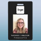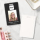 Crachá de identificação corporativo simples e moderno para negócios. Espaço para o logotipo da sua empresa, foto e texto personalizado na frente e no verso, que podem ser alterados ou excluídos de acordo com as necessidades da sua empresa. Design minimalista limpo e sem complicações.