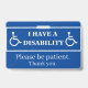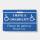 Crachá azul. Eu tenho uma deficiência. Por favor, seja uma patente. Alertar os outros para deficiências não vistas. Dê isso ao pai, irmão, avô, amigo, filho, mais. Podem vestir em público para que todos saibam que podem precisar de um pouco mais de tempo do que outros. Personalize, apague as costas e adicione suas próprias palavras. Pode adicionar um nome, número de telefone de emergência ou alerta para doença ou condição. Escolha editar. Um presente bem pensado.