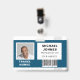 Crachá de nome com foto muito limpo e profissional para seus funcionários com diferentes combinações de cores, foto do funcionário, logotipo ou código de barras fácil de personalizar. O verso contém informações valiosas caso o crachá seja perdido. Confira toda a coleção para diferentes opções de cores e designs.