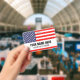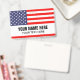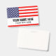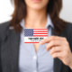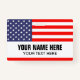 Crachá personalizado de nome do pátio com bandeira dos Estados Unidos. Etiquetas de plástico com clipe de metal na e opção de cabo de ferro. Texto personalizável. Como opção, adicione uma foto no verso. Etiquetas úteis para o escritório, trabalho voluntário, eventos, reunião, reunião, 4 de julho do partido, festival, equipes esportivas, clubes, delegação política e muito mais. A bandeira do orgulho americano.