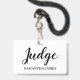 Tipografia de texto moderno crachá de nome de juiz para competições e concursos.