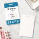 Personalize facilmente nosso crachá de nome de funcionarios com o logotipo da sua empresa, o nome do funcionário ou outro texto personalizado. É plástico pvc e disponível com um jardim, clipe ou um rolo retrátil. Projetado em azul-marinho com uma design moderna minimalista pelo MISOOK. Também disponível em outras cores e todas as cores são personalizáveis. Nenhuma quantidade mínima de ordem e nenhuma taxa de configuração.