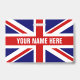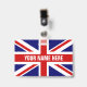 Crachá de nome personalizado com bandeira da bandeira do Reino Unido. Nomes de etiqueta plásticos disponíveis com o clipe e a opção de jardim. Texto personalizável. Como opção, adicione uma foto no verso. Identificação útil para escritório, trabalho voluntário, eventos, reunião, reunião, delegação, equipe esportiva, grupo, festival de música, festa e muito mais. Orgulho inglês. Bandeira britânica do Reino Unido, Grã-Bretanha Excelente.