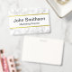 Crachá de Nome Preto Mármore Branco Falso Elegante