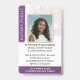 Crie uma aparência profissional com este crachá de identificação elegante. Um design sofisticado com um padrão de estrela geométrica em cores gradientes. Este modelo de dupla face é personalizado com sua foto, nome, informações comerciais e um código QR escaneável. Personalize o texto para adequar ao seu negócio. Perfeito para um Notário Público, Agente de Assinatura de Empréstimo, Agente de Entrega de Confiança Notarial Certificado, CNTDA, Notário Móvel, Apostila, profissional jurídico ou outro funcionário de empresa. Cores de impressão: roxo, lilás, branco e dourado. Explore a coleção online para designs impressos correspondentes!
