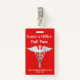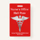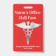 O consultório da enfermeira escolar passa em vermelho com gráficos de tom prateado de um símbolo médico. Personalize o texto personalizado para ler o que você deseja.