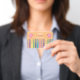 Um estudante horizontal genérico passa crachá para professores de arte com algumas canetas coloridas. . Personalize-o com o seu nome. © ArianeC Ilustrações — Todos os direitos reservados