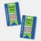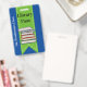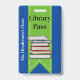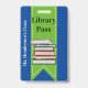 Passagem divertida na biblioteca da escola feita de azul com fita verde, descendo pelo meio, com gráficos de uma pilha de livros. Personalize o texto personalizado para ler o que você deseja.
