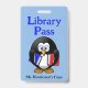 Passagem divertida na biblioteca da escola feita em azul com gráficos de desenho animado de uma coruja em óculos segurando livros. Personalize o texto personalizado para ler o que você deseja.