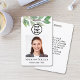 O crachá de segurança do ID da empresa deste funcionário apresenta um modelo de logotipo e fotografia em um fundo de verde botânico em aquarela.