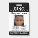 Personalize o crachá do agente de segurança do anel com agradecimentos à sua nota e área de fotos para o seu portador do anel.