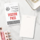 Este crachá de identificação de visitante moderno e simples é perfeito para qualquer empresa, hospital, casa de repouso, consultório médico ou escritório corporativo. Hoje em dia, muitas empresas precisam de passes de visitante verificados para identificar e controlar visitantes por razões de segurança. O design apresenta uma aparência minimalista e organizada com uma paleta de cores preta, vermelha brilhante e branca; um espaço para o logotipo da sua empresa e código de barras na frente e no verso. É profissional, elegante e personalizado.