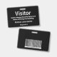 Crachá de visitante horizontal com design moderno em preto e branco. Todos os elementos são mutáveis ou removíveis. Elementos incluem: Visitante (pode dizer "convidado" ou "passagem" ou outra palavra), a frase "Crachá de Visitante Deve Ser Devolvido Antes de Sair do Edifício", nome da empresa, departamento da empresa, código de barras de segurança é na parte traseira e pode ser alterado ou removido. Também disponível em orientação vertical nesta loja. Fenda no topo para cordão.