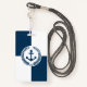 Design com temas náuticos, com decoração da soleira da âncora e da soleira do louro sobre fundo geométrico azul e branco