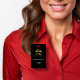 Crachás de funcionários de imóveis sofisticados ou representantes de campo com clipe incluído em um design elegante que inclui um símbolo de casa dourado e uma linha divisória geométrica com aparência metálica com modelos de nome e nome da empresa que você pode personalizar online. Projetado para um corretor de imóveis, corretor, agente ou agência. Perfeito para usar durante uma casa aberta para uma aparência profissional.
