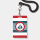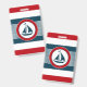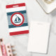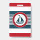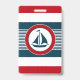 Design náutica com decoração em forma redonda de embarcações à vela, em fundo listrado, a azul, vermelho e branco