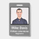 Crachá de ID de Funcionário Clássico no design tradicional. Cinza de pedra. Todos os elementos são alteráveis ou removíveis. Os elementos incluem: foto do funcionário, nome do funcionário, nome da empresa, departamento do funcionário. A parte traseira do design tem uma verificação de código de barras de segurança. Slot no topo para o pátio.